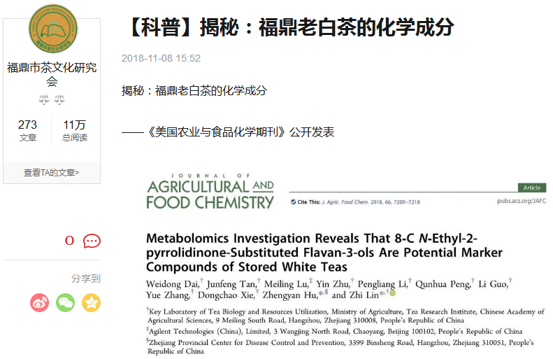 代表性成果:協(xié)助福鼎市政府發(fā)現(xiàn)年份白茶的特征成分“老白茶酮”
