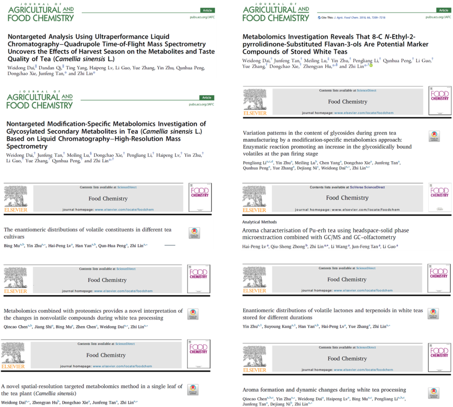 茶葉的風(fēng)味品質(zhì)特征和營養(yǎng)功效是消費(fèi)者選購茶葉的最主要關(guān)注點(diǎn),也是當(dāng)前茶學(xué)領(lǐng)域的研究熱點(diǎn)。本成果利用當(dāng)前先進(jìn)的茶葉品質(zhì)化學(xué)和營養(yǎng)功效研究平臺和技術(shù)為各主要產(chǎn)茶縣(市)地方政府、龍頭企業(yè)和涉茶科研院所、大專院校提供“茶葉品質(zhì)成分—營養(yǎng)功效”一站式整體科研服務(wù)。相關(guān)成果已在Journal of Agricultural and Food Chemistry、Food Chemistry等專業(yè)期刊發(fā)表文章60余篇。