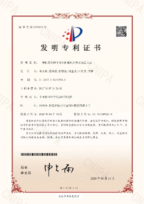 本成果通過新技術、新裝備的融合,在關鍵環節上創新性提出了新的控制細節和控制因子,使得對品質的提升和控制更為穩定。借助工藝和細節的組裝集成,提出了整套龍井茶機制技術,所制產品綜合品質超過手工加工,解決了當前單機制茶輕飄和滋味生澀及手工制茶低效率的問題。