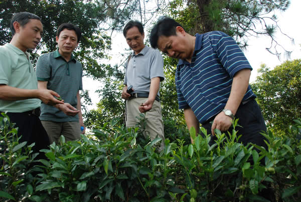 2012年7月31日~8月1日,陳直書記率辦公室主任李靈光、茶葉質量認展中心主任傅尚文研究員一行赴廣西壯族自治區調研茶業生產情況。廣西壯族自治區農業廳優質農產品開發服務中心(綠色食品辦公室)楊天錦主任等向專家組介紹了全區茶葉生產現狀、茶葉質量安全生產、有機茶認證相關情況,并就有機產品認證新規后,我所與廣西如何加強有機茶生產認證和茶葉技術支持等進行了交流。隨后,專家組一行深入六堡茶原產地梧州市,實地考察了廣西區農業產業化龍頭企業區梧州茂圣茶業有限公司的六堡茶集中加工區和蒼梧縣六堡鎮八集山莊有機茶生產基地,聽取了公司負責人和種植、加工負責人的情況介紹,就六堡茶的生產基地生態環境建設、優良品種選擇、標準園建設、質量安全控制、茶葉加工、歷史茶葉文化的挖掘整理等進行了交流。