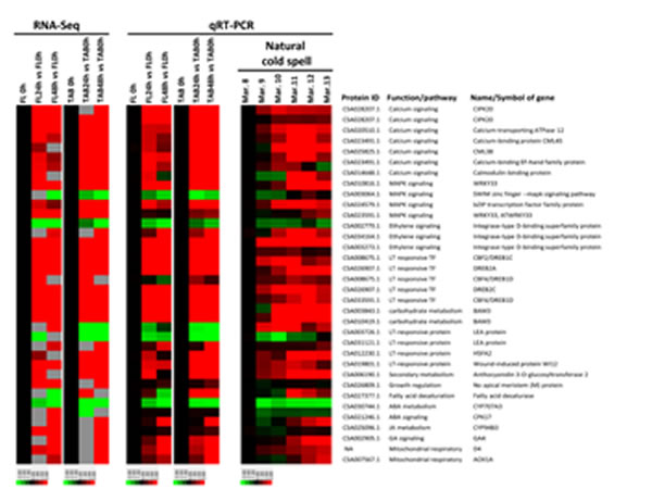 近年來隨著茶樹早生品種的廣泛種植,低溫尤其是“倒春寒”對茶葉生產的影響越來越大,“倒春寒”已經成為我國茶葉生產的主要災害氣候因子之一,解決“倒春寒”問題已成為我國茶葉界共同關注的重要難題及熱點。近期,我所茶樹遺傳育種團隊利用轉錄組學、代謝組學等技術手段,在茶樹新梢響應“倒春寒”的分子調控機理研究上取得重要進展。