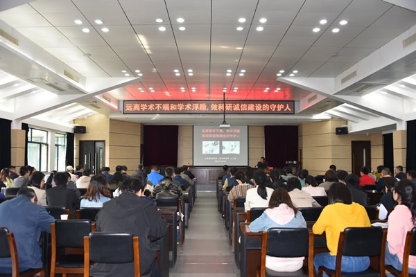 王小波書記圍繞什么是學術不端行為、全球各國學術不端行為表現(xiàn)、中國學術不端背后的誠信缺失、以及如何營造良好的科研生態(tài)等作了講解。王書記通過對國內(nèi)外典型案例的剖析,指出偽造科研數(shù)據(jù)、抄襲侵占他人學術成果、篡改實驗數(shù)據(jù)等學術不端行為嚴重敗壞科研工作者的聲譽,阻礙科學進步發(fā)展,同時也損害了社會公共利益。他強調(diào),作為科研工作者要深刻領會遵守科研誠信和學術道德的重要意義,提高思想認識,信守科研道德,大力弘揚科學家精神,自覺抵制學術不端行為,營造良好的科研生態(tài)環(huán)境。