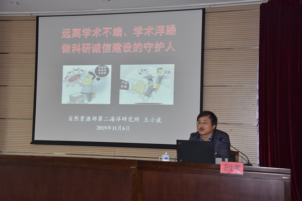 為引導我所科研人員遵守學術規(guī)范、堅守科研誠信,摒棄學術不端行為,建設誠信科研的良好學術環(huán)境,11月6日,所紀委邀請自然資源部第二海洋研究所紀委書記王小波來所作《遠離學術不端和學術浮躁,做科研誠信建設的守護人》專題報告。全所科研人員、研究生共200余人參加報告會。