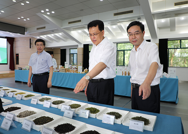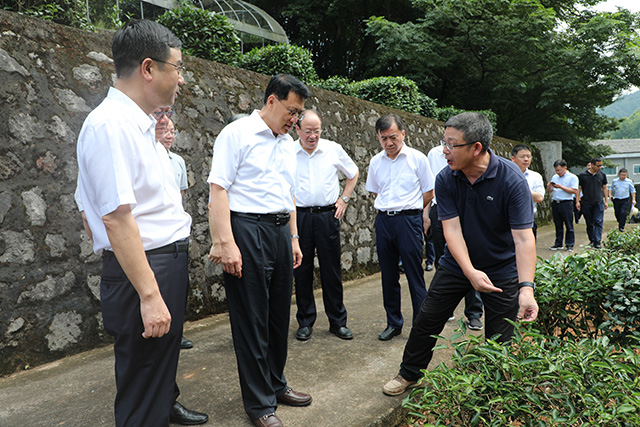 7月29日上午,浙江省委副書記、省長袁家軍到所調研,考察了國家種質杭州茶樹圃和農產品質量安全研究中心實驗室,體驗了茶葉深加工產品、六大茶類感官審評。副省長彭佳學、省政府秘書長陳新,省政府副秘書長、研究室主任應雄,省科技廳廳長高鷹忠,省農業農村廳廳長王通林等陪同調研。