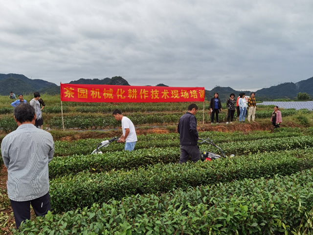 團隊首席韓文炎研究員實地介紹了茶園機械化耕作的種類、耕作機選型和耕作技術,并就機械化耕作過程中存在的問題與參會的茶技員和茶農進行了探討。培訓班還對機械化耕作茶園土壤培肥、樹冠培養、病蟲防控和茶葉采摘等技術進行了培訓。此次培訓班提高了茶農和茶企進行機械化耕作的意識,對今后推廣茶園機械化耕作,提高機械化管理茶園的生產技術水平具有一定幫助。