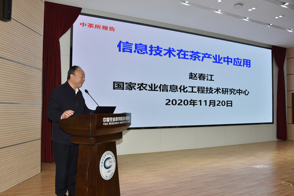 11月20日,中國工程院院士、國家農業信息化工程技術研究中心主任趙春江研究員應邀到所作題為《信息技術在茶產業中應用》的報告。阮建云副所長主持報告會。