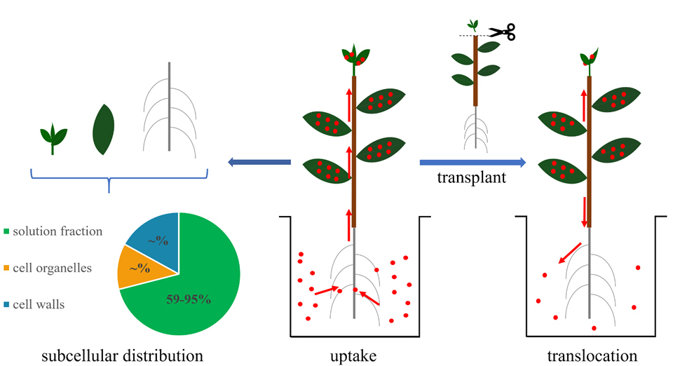 圖 1 . 高氯酸鹽在茶樹中的吸收、累積、轉移和亞細胞分布示意圖