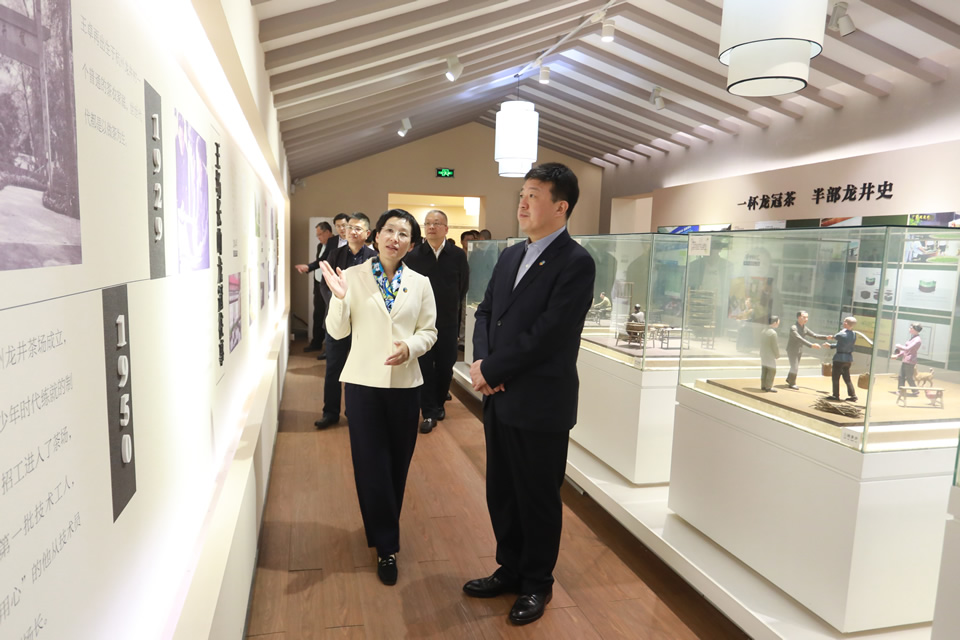 呂軍一行實地考察了龍冠龍井示范茶園,詳細了解了龍冠公司“茶園到茶杯”的產(chǎn)業(yè)鏈全程,并品鑒了龍冠龍井茶。總經(jīng)理姜愛芹匯報了龍冠公司在西湖龍井茶傳承保護與發(fā)展方面的工作情況,以及公司“十四五”業(yè)務(wù)發(fā)展的布局。