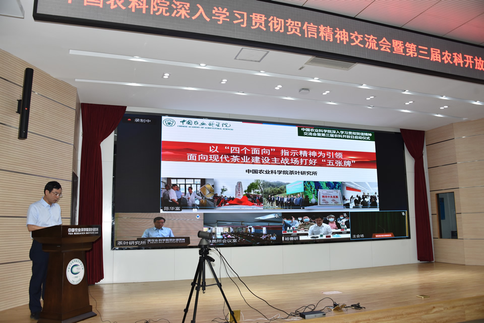 今年是習近平總書記致中國農業科學院建院60周年賀信4周年。5月26日上午,所領導、創新團隊首席、黨支部書記、處級干部同步參加了院深入學習貫徹賀信精神交流會暨第三屆農科開放日啟動儀式視頻會,重溫總書記賀信精神。作為研究所代表,所長姜仁華圍繞我所“面向現代農業建設主戰場”工作情況,作了題為《以“四個面向”指示精神為引領 面向現代茶業建設主戰場打好“五張牌”》的學習和工作體會交流報告。
