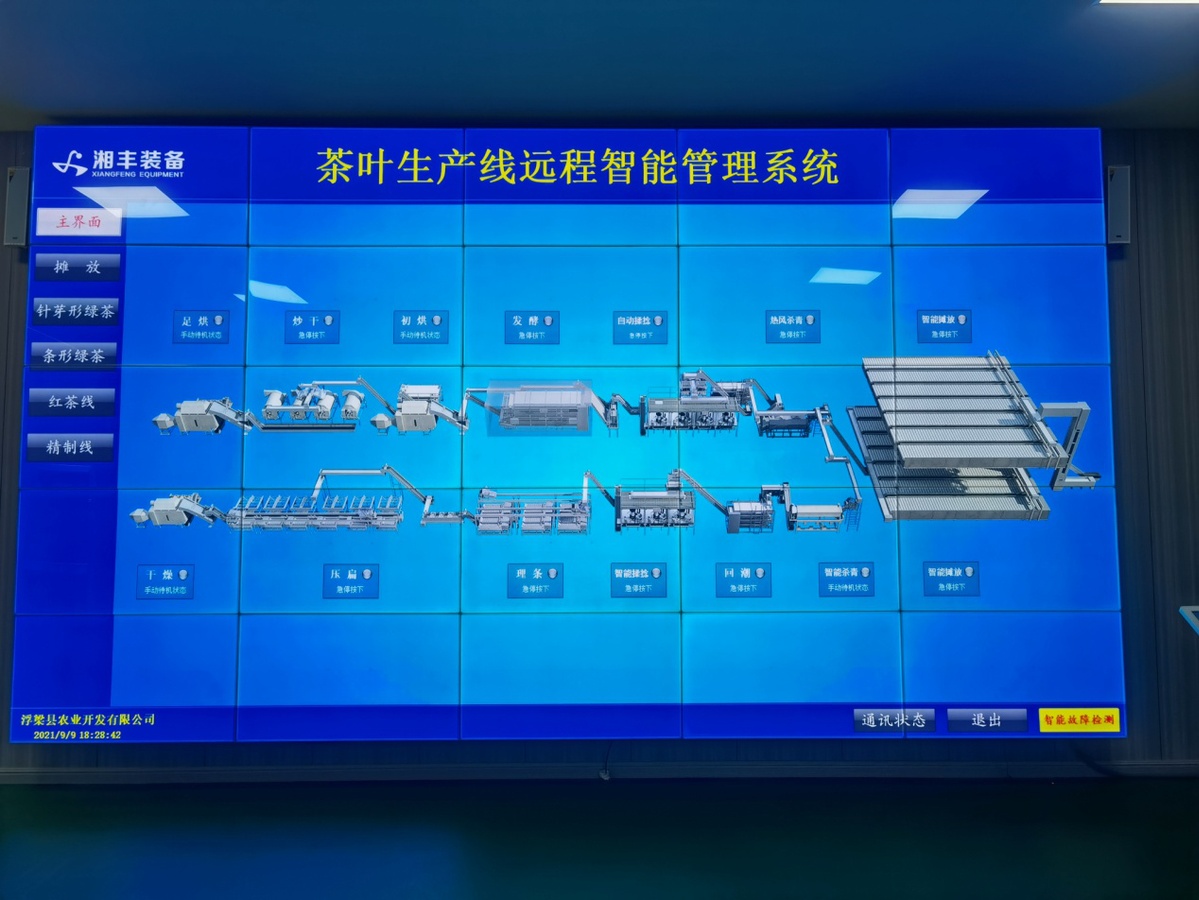 試驗推廣過程中,智能感知、信息控制等新技術首次被應用于茶葉初制精制成套裝備;創建了模塊化生產線結構和生產智能管理系統,突破了傳統茶葉加工技術智能化瓶頸,建成了我國首套代表性綠茶的智能化加工生產線,總體技術水平達到國際領先。