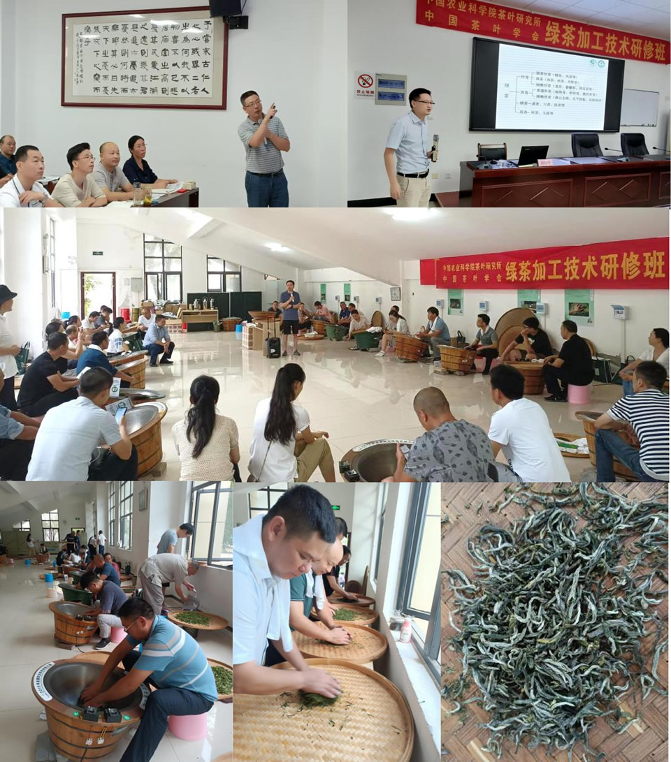 研修班分別從適制綠茶品種的類型和特征、綠茶基本加工工藝及品質(zhì)形成原因、代表性名優(yōu)綠茶的關(guān)鍵加工技術(shù)、創(chuàng)新綠茶工藝和現(xiàn)代化加工設(shè)備等內(nèi)容進(jìn)行深入講解,并帶領(lǐng)學(xué)員開展了不同外形風(fēng)格的烘青和炒青綠茶加工實(shí)踐,剖析每個(gè)工藝過程的關(guān)鍵技術(shù)要領(lǐng),全面提升綠茶加工技術(shù)水平。學(xué)員們還赴當(dāng)?shù)囟嗉也杵蠛秃辈璨^等地參觀交流,了解湖北茶的歷史文化,走進(jìn)五峰綠茶品種園,考察五峰綠茶生產(chǎn)車間和連續(xù)化加工流水線。