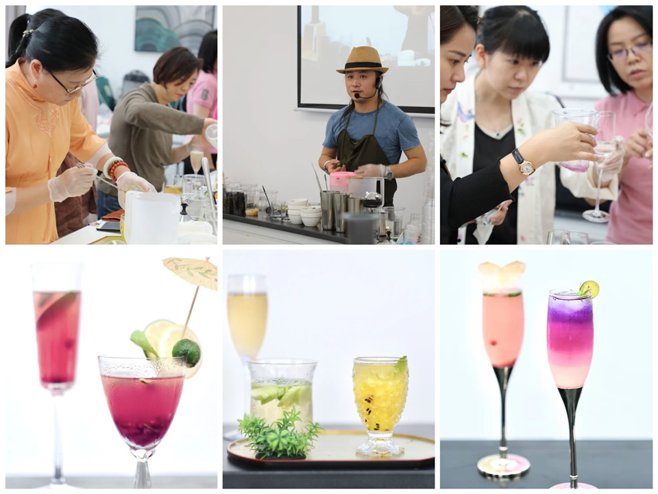 本次研修邀請業內相關專家學者,圍繞新茶飲的產業發展概況、茶飲調配的原則和風味呈現、產品制作和創意設計、新茶飲的質量安全標準等方面進行授課指導。學員們將所學融入實踐,從設計到選材再到比例調試,現場創作出了一批新奇的調飲作品。