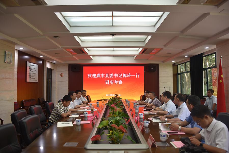 7月22日,湖北咸豐縣委書記郭玲一行來所考察調研,恩施州政協副秘書長李國慶,縣領導曾軍、陳世雄、譚皓和相關部門負責人陪同,所長姜仁華、副所長王新超參加接待并座談。