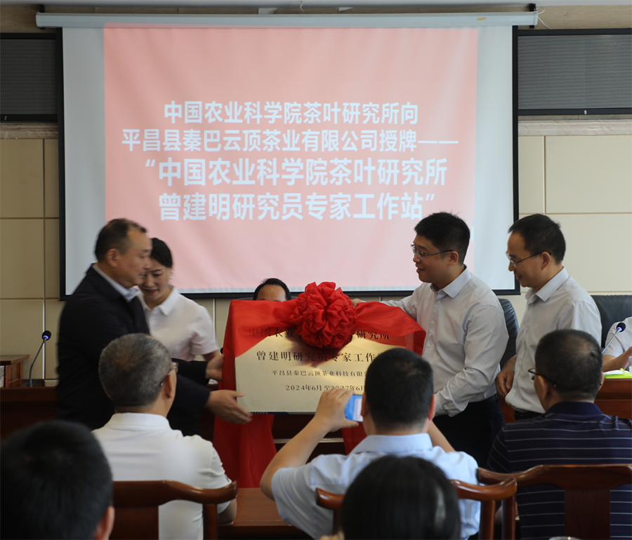 期間,“中國農(nóng)業(yè)科學(xué)院茶葉研究所曾建明研究員專家工作站”在平昌縣秦巴云頂茶業(yè)科技有限公司授牌。工作站今后將重點(diǎn)圍繞優(yōu)質(zhì)茶機(jī)采機(jī)制,集成我所研制的適宜優(yōu)質(zhì)茶機(jī)采的“中茶”系列新品種、新技術(shù)、新裝備,通過示范帶動(dòng),推進(jìn)川東北茶區(qū)優(yōu)質(zhì)茶機(jī)采機(jī)制工作,助力平昌縣茶產(chǎn)業(yè)的高質(zhì)量發(fā)展。
