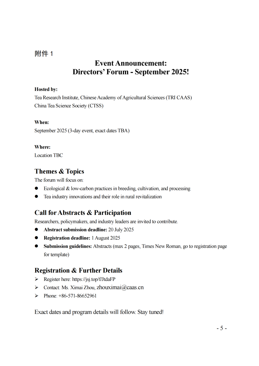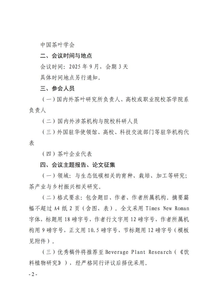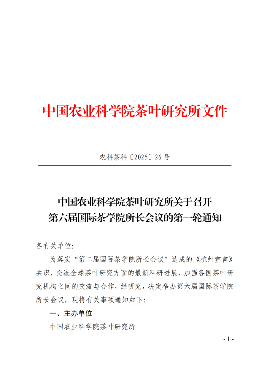 中國(guó)農(nóng)業(yè)科學(xué)院茶葉研究所關(guān)于召開(kāi)第六屆國(guó)際茶學(xué)院所長(zhǎng)會(huì)議的第一輪通知